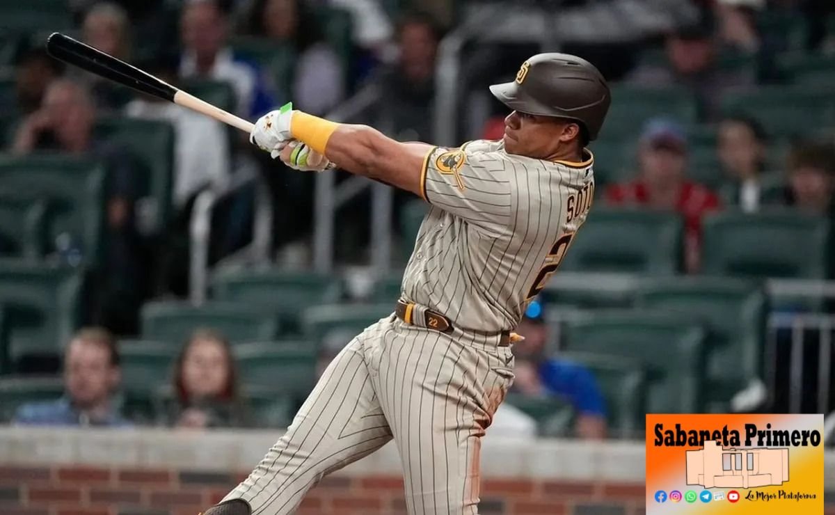 Durante el encuentro de los Padres de San Diego frente a los Mets de Nueva Yor, en lo que fue su primer turno de la tarde con Manny Machado a bordo en la inicial, Juan Soto castigó una recta a 93.2 millas cortesia del lanzador Tyler Megill, depositando la bola a 453 pies de distancia con una velocidad de salida de 103.6 millas. El swing de Soto fue a 93.6 millas.