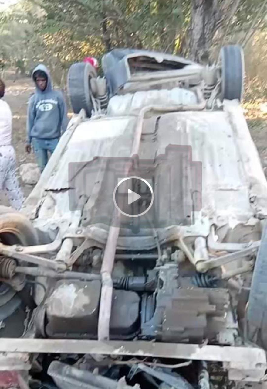 Las Charcas de María Nova SJM: Accidente; Carro queda con las cuatro gomas hacia arriba, tres a bordo incluyendo un niño.