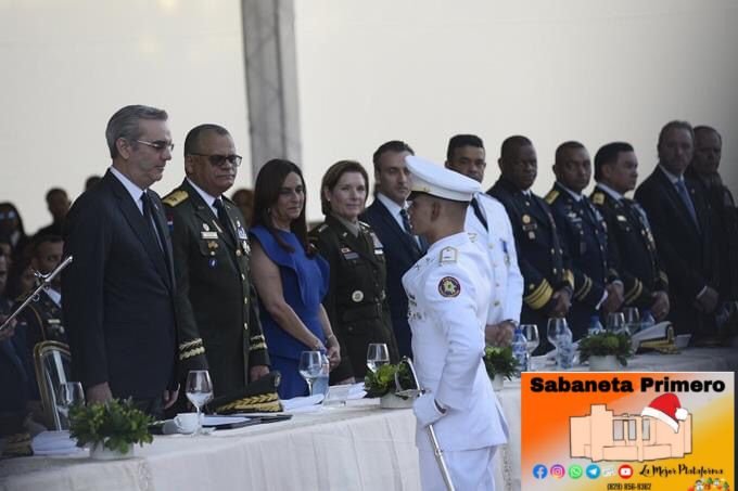 El mandatario tomó el juramento y entregó el sable de mando a 35 oficiales subalternos graduados como licenciados en Ciencias Militares, reconocido por el sistema de educación superior del país a través del Ministerio de Educación Superior, Ciencia y Tecnologías (Mescyt).