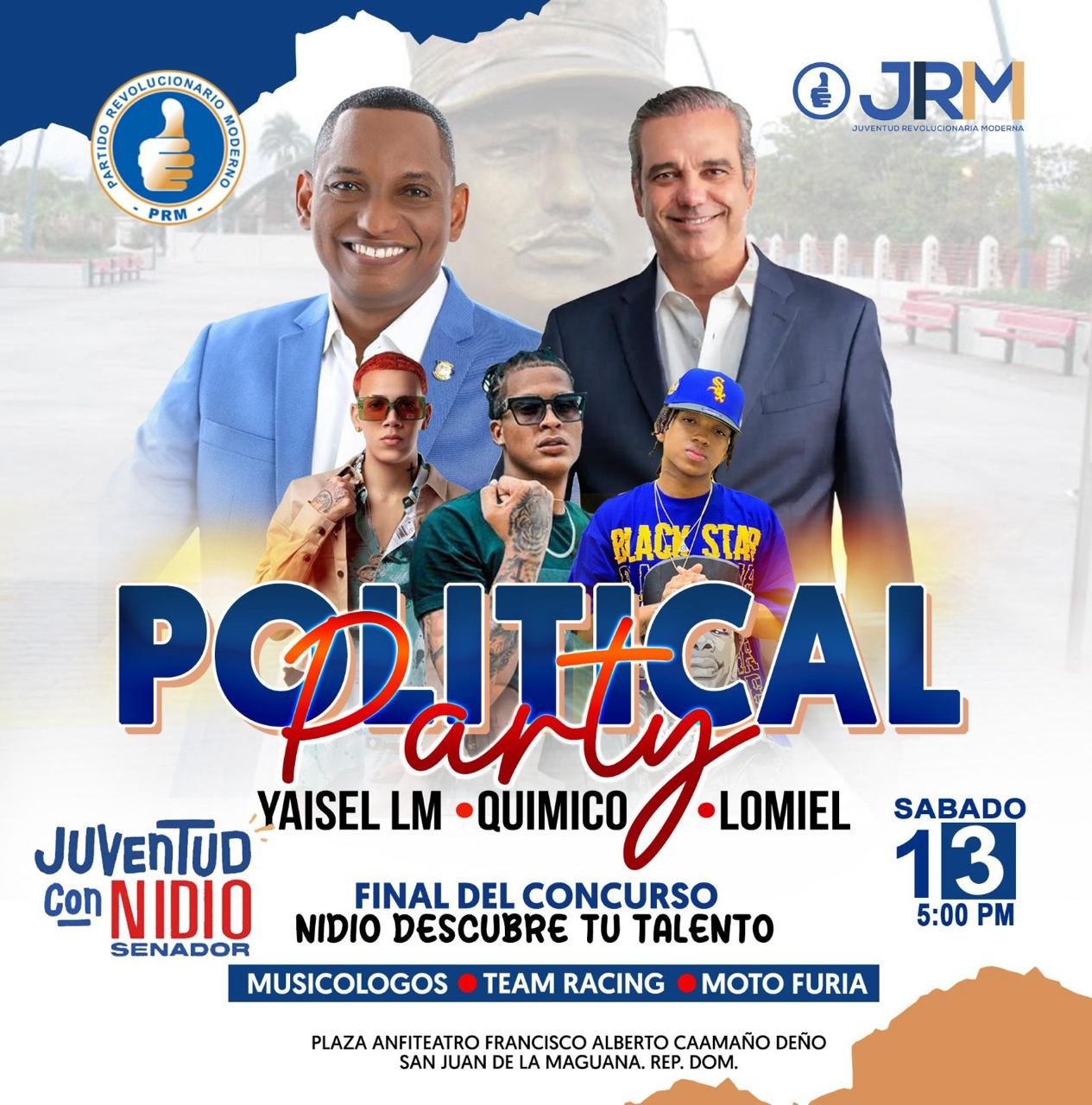 La actividad denominada political Pary fue desarrollada en el Anfiteatro de San Juan de la Maguana y contó además con la presencia de importantes dirigentes del partido oficialista.
