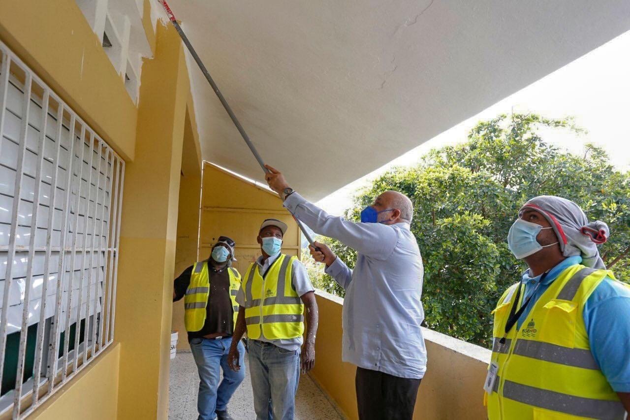 Afirma que agiliza los trabajos de reparación de las escuelas de los 48 municipios que iniciarían clases el próximo seis de abril. El pasado sábado, el ministro Roberto Fulcar continuó con el recorrido para supervisar los trabajos de mantenimiento correctivo en las escuelas para que estén dotadas de agua, luz, sistema sanitario óptimo y del mobiliario necesario.