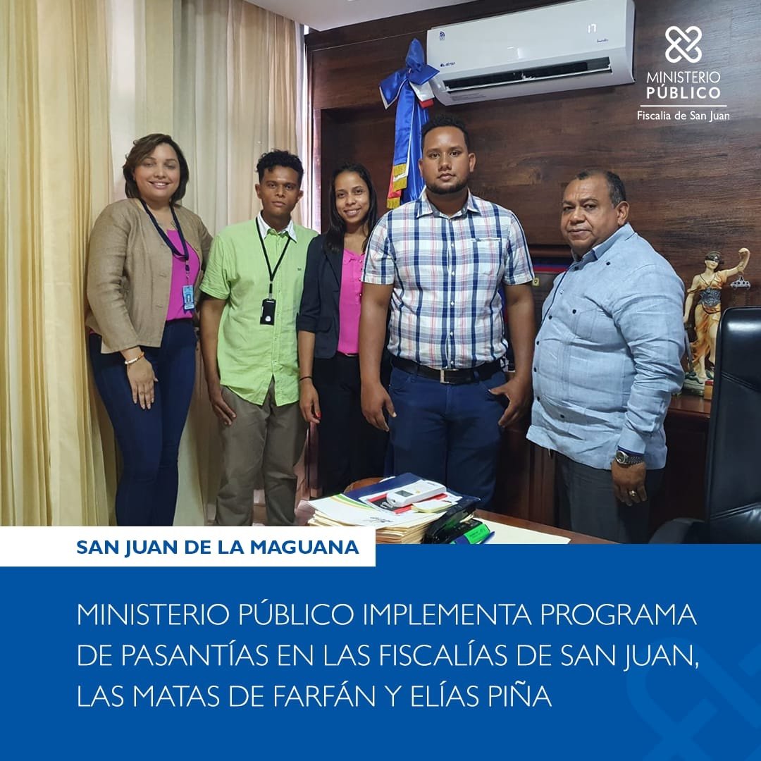 Los pasantes Enmery Rosado, Carlos Jiménez y José Ángel Aquino, con el interés de poner en práctica los conocimientos adquiridos y recibir entrenamientos en cuanto al manejo de los casos y publicaciones solicitaron realizar sus pasantías en las Fiscalías de San Juan de la Maguana, Las Matas de Farfán y Elías Piña, para poder optar por el título universitario.