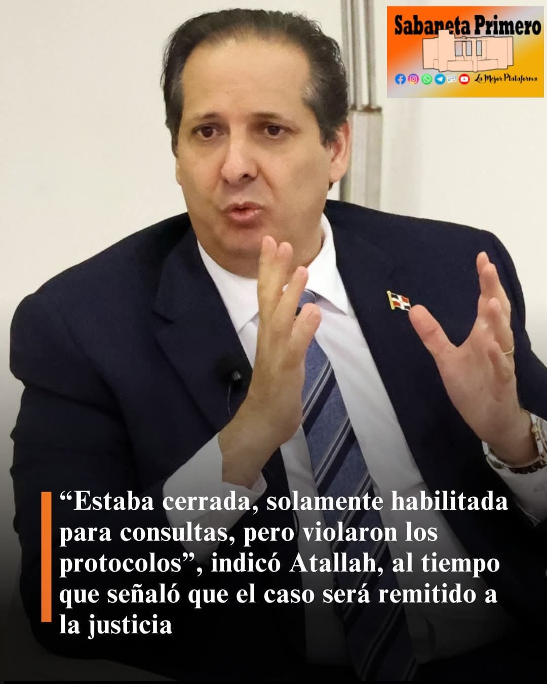 “Estaba cerrada, solamente habilitada para consultas, pero violaron los protocolos”, indicó Atallah, al tiempo que señaló que el caso será remitido a la justicia mientras continúan las investigaciones.