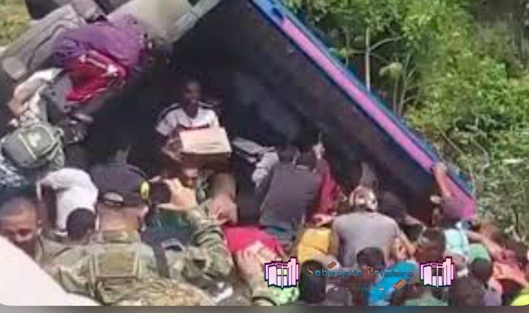 Santo Domingo, RD- El saqueo que hace la población cuando un vehículo con mercancía sufre un accidente en las carreteras de la República Dominicana 🇩🇴 debería estar considerado como un delito grave, ya que desaprensivos viven al asechos de los mismos.