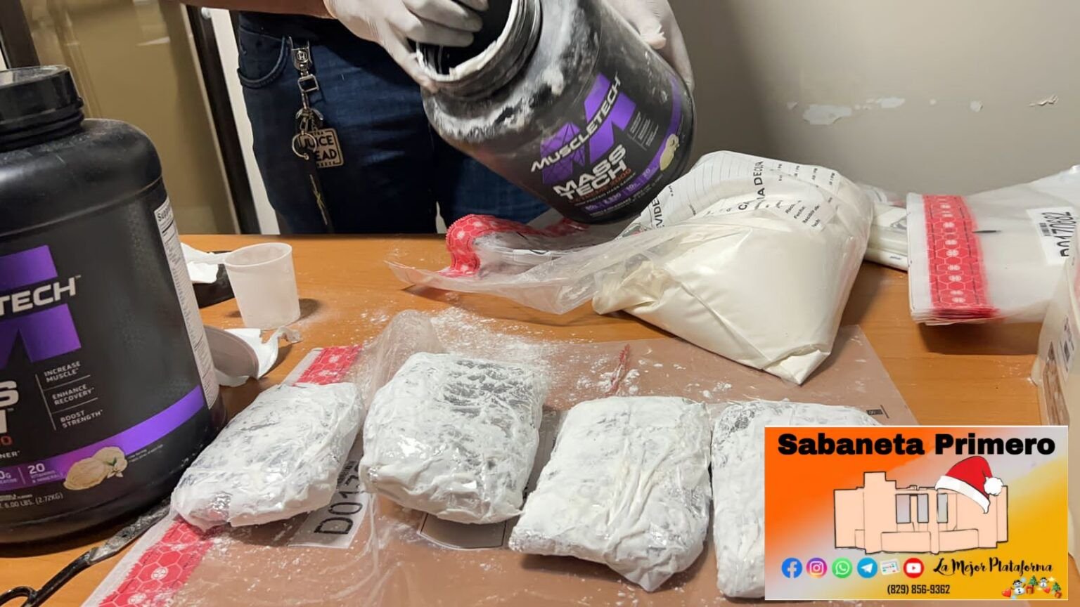 Posteriormente y en presencia de un fiscal adjunto, se inició el protocolo de inspección, encontrando en su interior cuatro potes que simulaban ser proteínas, con once paquetes de de marihuana, con un peso superior a las tres libras.