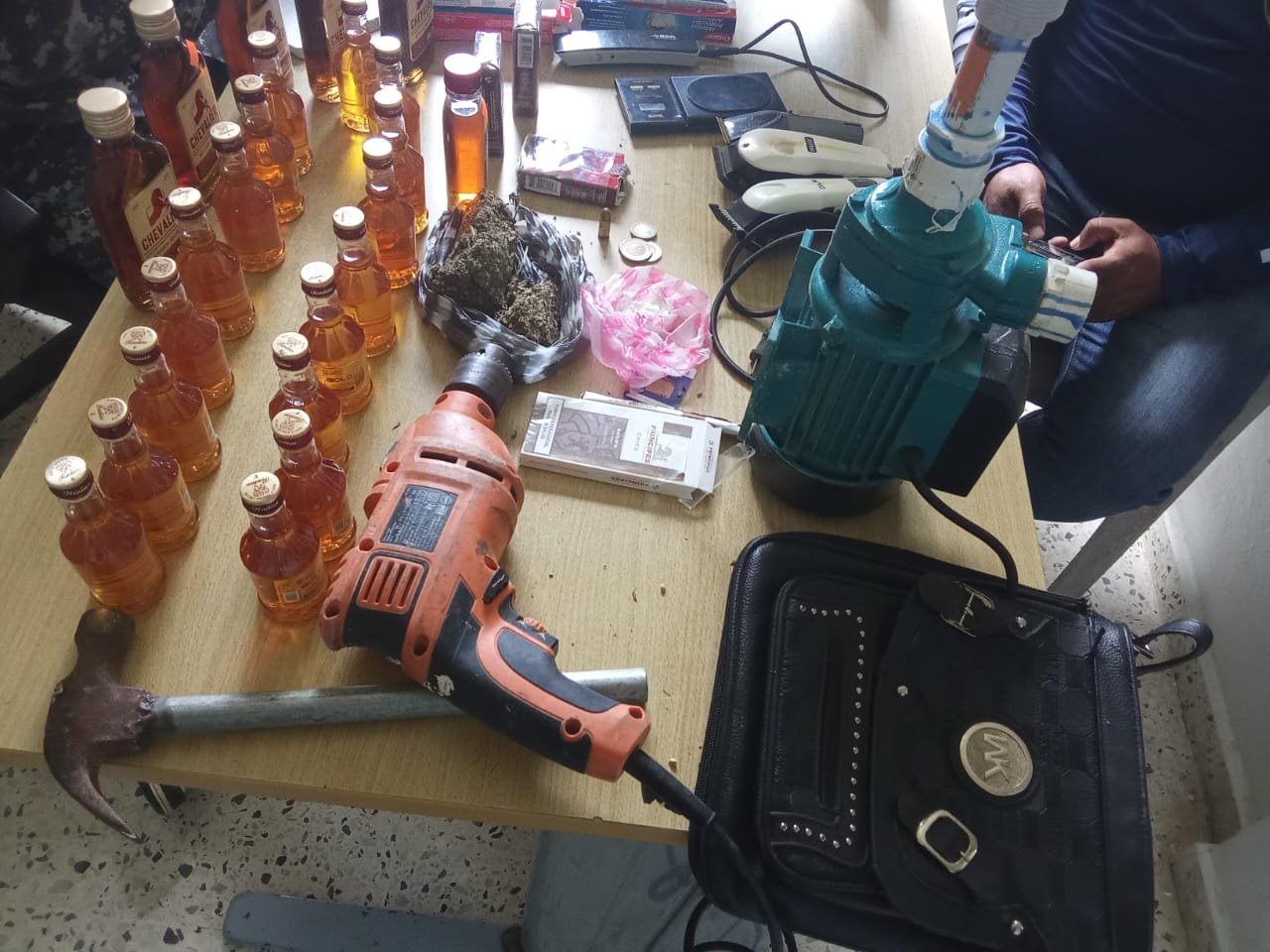 Asimismo, fueron ocupados tres abejones para corte de pelo, un taladro, una bomba de agua, una balanza marca Tanita de color negro, un martillo y una motocicleta marca Baja, todo lo cual permanecía en el referido punto de venta dirigido presuntamente por un hombre identificado como Apolinar, alias “El Capitaleño”.