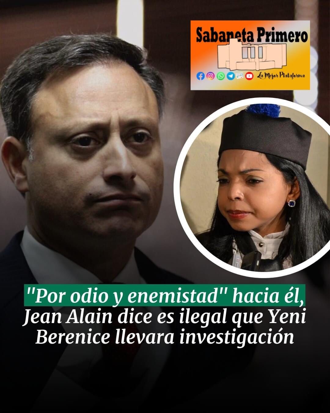 "En esa rueda de prensa también se evidenció la conocida enemistad, odio y deseo de venganza en mi contra, confirmándose la parcialidad identificada por la ONU en los puntos 60 al 69 de su decisión y es que esta procuradora adjunta nunca debió participar en mi investigación y acusación, porque la ley prohíbe investigar y acusar a personas con las que tienen enemistad capital y por eso se los solicitamos en tres ocasiones, pero más pudo el odio que la ley y hoy comenzamos a ver la consecuencia de esa persecución obsesiva", expresó Jean Alain Rodríguez este lunes en un video que difundió en sus redes sociales en compañía de sus abogados.