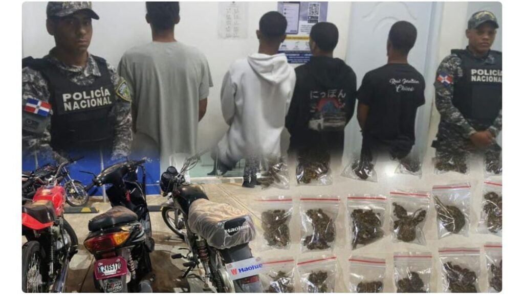 En Villa Mella, se desmanteló un punto de venta de drogas donde se ocuparon porciones de marihuana y una motocicleta que había sido reportada como robada. La rápida intervención de los agentes permitió la recuperación del vehículo y la incautación de las sustancias ilícitas.