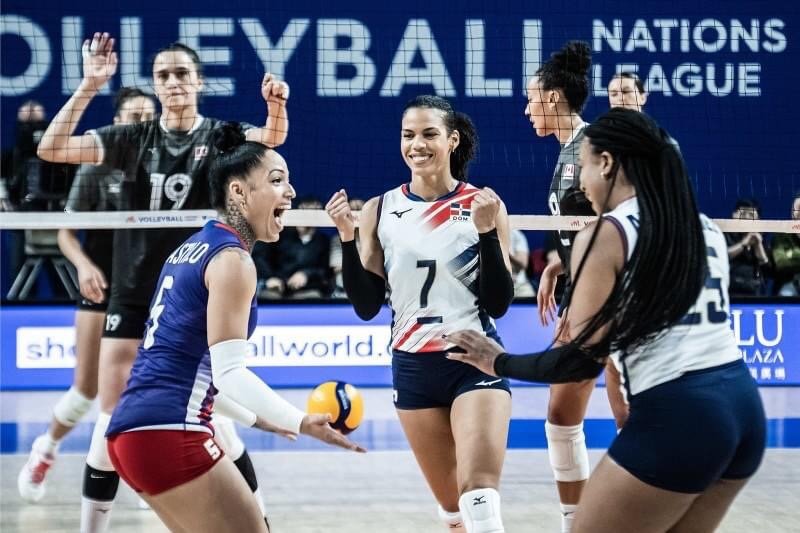 Un fuerte remate de Brayelin Martínez, ya con Dominicana con 15 puntos, le dio la victoria a las caribeñas 3-2, y lo celebraron con mucho ruido. Canadá venció el año pasado a Reinas del Caribe en la Liga de Naciones.