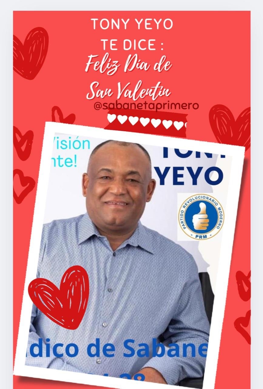 San Juan de la Maguana, RD- El ex- candidato a síndico del distrito municipal de Sabaneta, por el PRM Tony Yeyo, envió hoy un mensaje de felicitación a todos los dominicanos y de forma especial a los munícipes de La Tierra Santa.