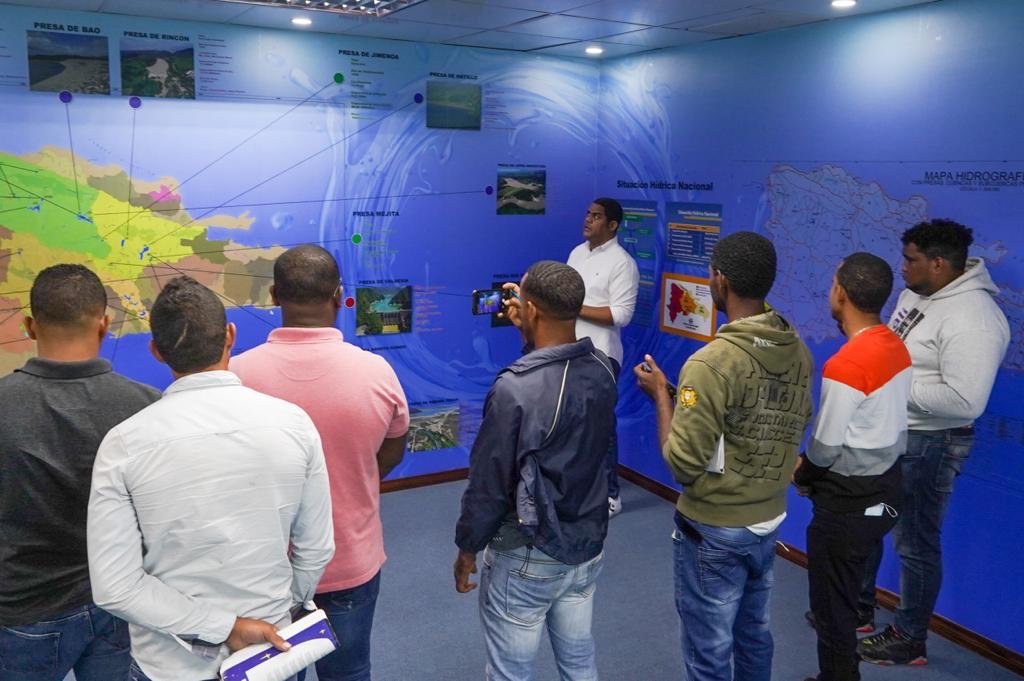 Juan Ramón Chalas, coordinador del Centro para la Gestión Sostenible Recursos Hidráulicos en los Estados Insulares del Caribe (CEHICA) del INDRHI, fungió de enlace para la visita de los alumnos que actualmente se encuentran cursando las asignaturas de Operación de Sistema de Riego y Riego I y II, por lo que el líquido pasa a ser el tema centralde sus carreras y la Sala del Agua constituye un espacio de aprendizaje práctico en virtud de que aborda ejes temáticos como el ciclo del agua, medición del agua y su almacenamiento en las presas.
