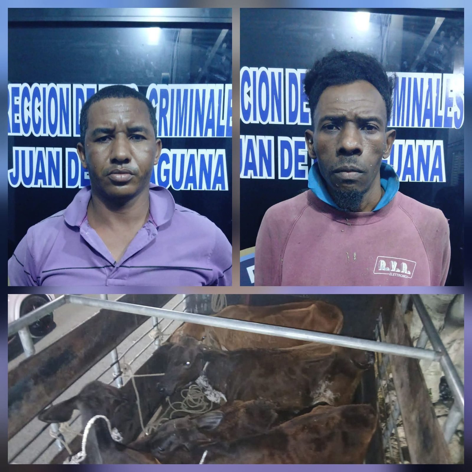 San Juan de la Maguana. – Agentes de la Policía Nacional, adscritos a la Dirección Central de Investigación (DICRIM), apresaron a dos individuos en flagrante delito cuando trataban de apoderarse de varias reses sin permiso de sus dueños y recuperaron cinco de ellas en un predio de unos de los acusados en el municipio Juan de Herrera, provincia San Juan.