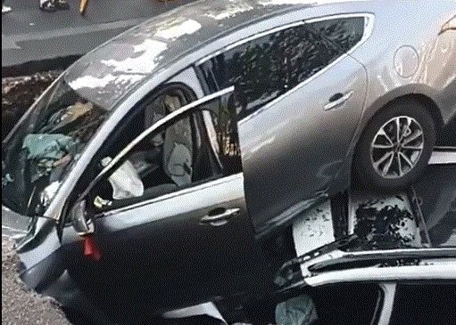 En un audiovisual se observa como dos vehículos cayeron dentro de un hueco enorme que se abrió en el asfalto.