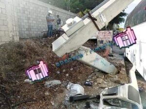 Además con el impacto derribó un poste de luz.