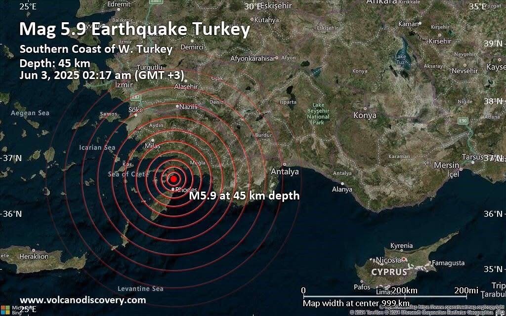 La Presidencia de Gestión de Desastres y Emergencias indicó que el sismo tuvo su epicentro en el mar Mediterráneo y ocurrió a las 2:17 de la madrugada. Se sintió en regiones vecinas, incluida la isla griega de Rodas, donde despertó a muchos mientras dormían, informó la televisión NTV de Turquía.