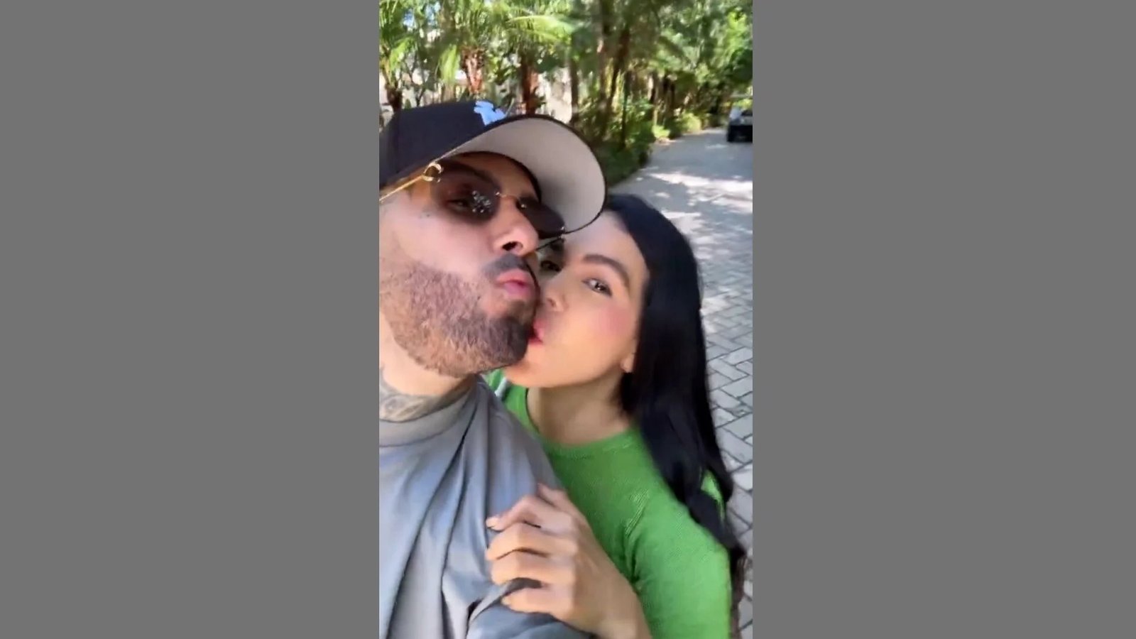 En el audiovisual se observa al artista de 43 años caminando con su pareja, Juana Valentina Varón, quien le da un coqueto beso en los labios. Posteriormente se observa a su joven suegra caminando al otro lado y quien tras una indicación del cantante se acerca a darle un beso en la mejilla.