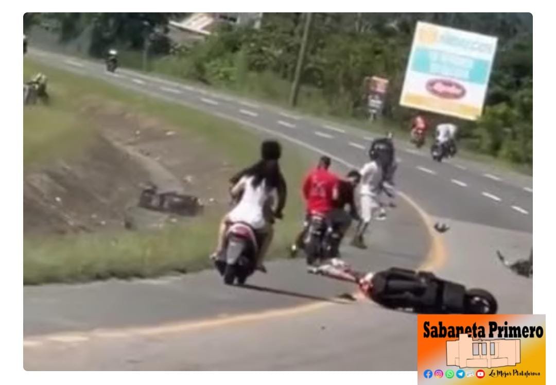 Santo Domingo.- Quedó captado en video el momento en que un joven impacta otra motocicleta y pierde el control en la autopista Duarte mientras participaba en una carrera clandestina.