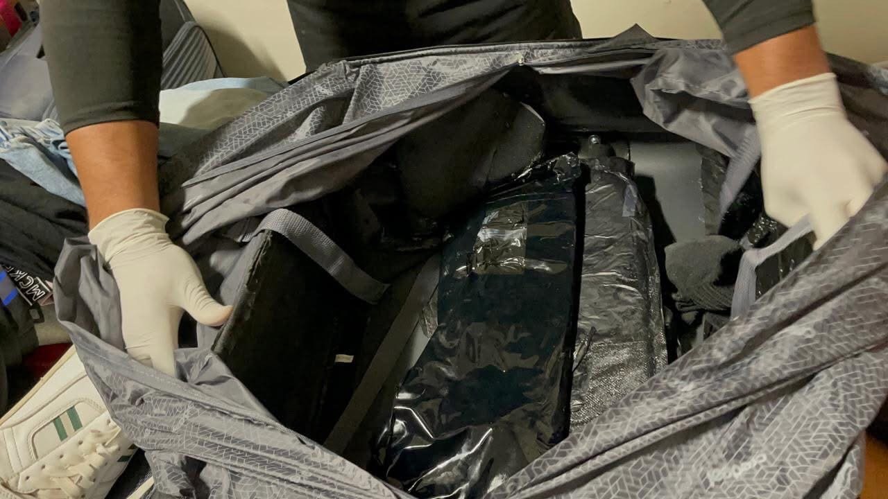 La Dirección Nacional de Control de Drogas (DNCD) y el Cuerpo Especializado de Seguridad Aeroportuaria (CESAC), coordinados por el Ministerio Público, observaron imágenes sospechosas en varios equipajes y abrieron las maletas, hallando cinco paquetes envueltos en cinta adhesiva de color gris y negro, con un peso superior a los ocho kilogramos de coca.
