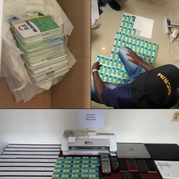 Uno de los detenidos es Anthony Decena Hernández, en cuya vivienda, ubicada en el municipio de Los Alcarrizos, fueron ocupados tres celulares, una laptop, un reloj inteligente, y 134 tarjetas en blanco (PVC), utilizadas para clonar tarjetas originales de los beneficiarios.