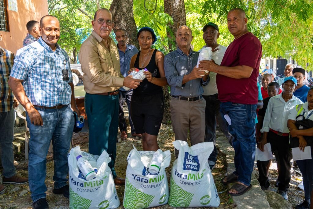 Por disposición del director ejecutivo, Frank Alejandro Herasme, la institución distribuyó 4,202 sacos de fertilizantes químicos de 45 kilogramos, 1,454 litros de fungicidas y 674 litros de insecticidas, beneficiando a 941 productores de café, aguacate, cacao y otros rubros agrícolas de las comunidades La Ciénaga, Paraíso, Enriquillo, Polo, Santa Elena, La Guázara y Los Blancos, en la provincia de Barahona.