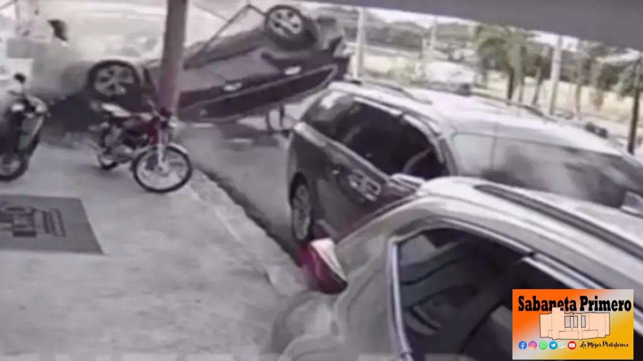 Cámaras de seguridad captaron el trágico incidente ocurrido el jueves en la Avenida Charles de Gaulle, cerca del establecimiento «Come y Bebe», donde un vehículo le cae encima a un hombre desde el segundo piso de un establecimiento.