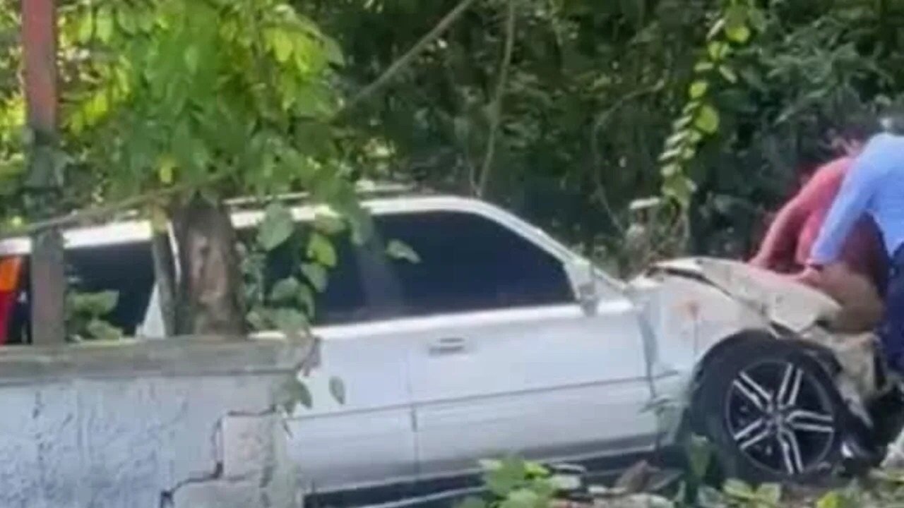 Santo Domingo.– Un aparatoso accidente de tránsito se registró este martes en la avenida República de Argentina, cuando un vehículo perdió el control e impactó contra la pared perimetral del Jardín Botánico Nacional, ingresando a las instalaciones del parque.